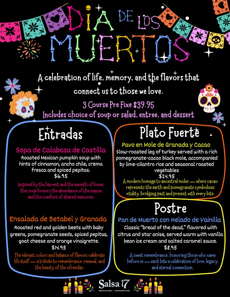 This November, join us at Salsa 17 for a culinary experience inspired by one of Mexico’s most meaningful celebrations — Día de los Muertos.